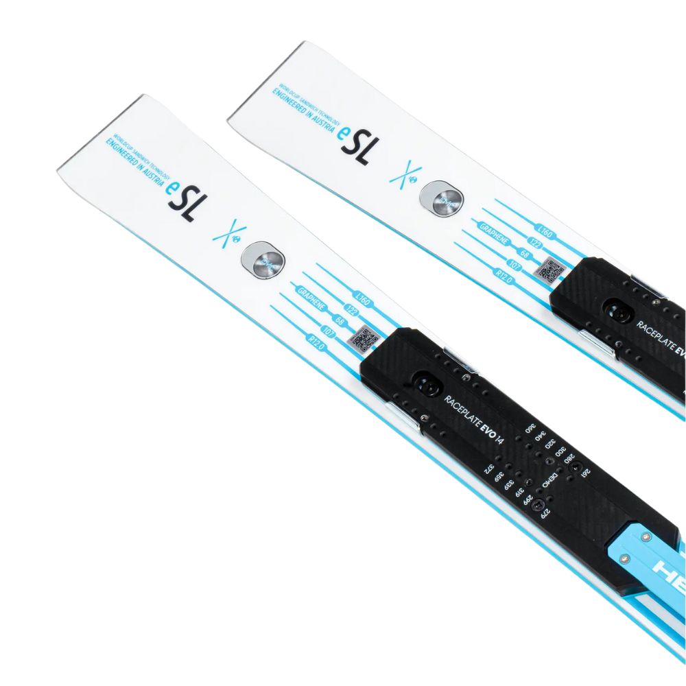 Thanks to its new tip shape, the e-SL makes turn initiation effortless. Inside, it features a wood core, Titanal reinforcement, and Graphene, combined with ABS sidewalls and the Race Plate Evo for race-level power transfer. HEAD’s EMC (Energy Management Circuit) actively reduces vibrations, creating a smoother, more stable ride across every carve.